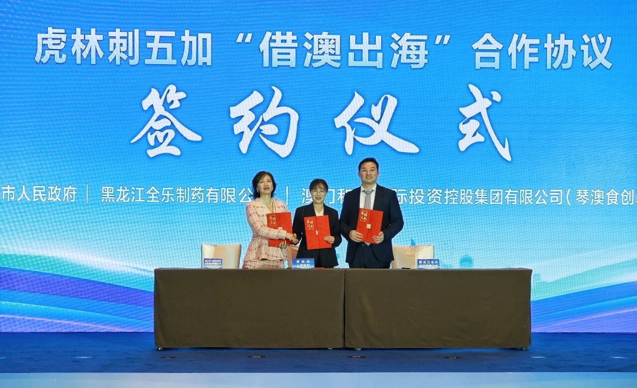 会议现场,还发布了复方刺五加颗粒综合评价阶段性成果报告,举行了国家科技重大专项启动仪式,虎林市人民政府、黑龙江全乐制药有限公司与澳门和飞国际投资控股集团有限公司签订了虎林刺五加“借澳出海”合作协议。