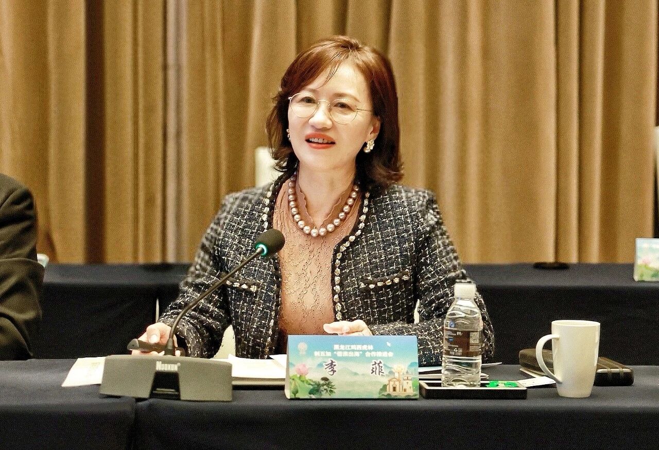 焦桂莉在致辞时说,刺五加出海要开创新局面。借此业界盛会,我们真诚希望各位领导、专家和来宾能够积极分享对“刺五加”品牌培育的宝贵意见和建议,分享合作经验,进一步吸引更多的金融资源和投资项目,进入到鸡西虎林和整个黑龙江,形成产业发展新的飞跃。