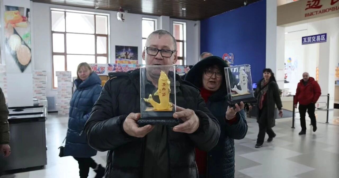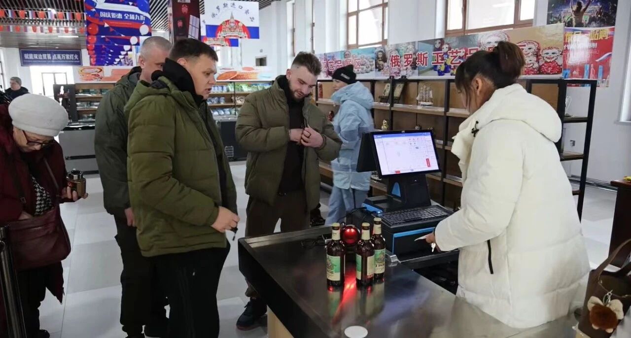 免签政策的东风不仅点燃了中国游客的消费热情,更吸引大批俄罗斯游客慕名而来。以往需要办理繁琐签证手续的跨境之旅如今变得便捷高效,越来越多的俄罗斯游客乘着政策红利走进密山,走进边民互市交易大厅,开启一场独具特色的“中国购物之旅”。在专门设置的中国特色商品区,兴凯湖大米颗粒饱满、香气四溢,大白鱼肉质鲜嫩、声名远扬,这些带着浓郁地域特色的产品备受俄罗斯游客青睐;印有密山风光、兴凯湖美景的文创纪念品,如明信片、钥匙扣、丝绸画等也成为他们馈赠亲友的首选。俄罗斯游客切莫达诺娃·阿玛利娅·阿列克谢耶夫娜兴奋地说:“密山很美,这里的商品很棒。下次,我还要带家人一起来。”在购物之余,俄罗斯游客们还能漫步密山街头,品尝东北特色美食,近距离感受中国的风土人情与文化魅力。