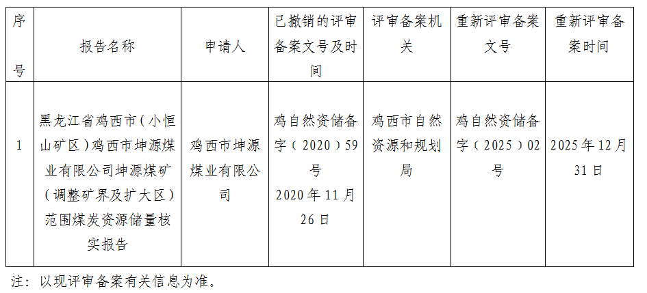 鸡西市自然资源和规划局矿产资源储量重新评审备案情况公示