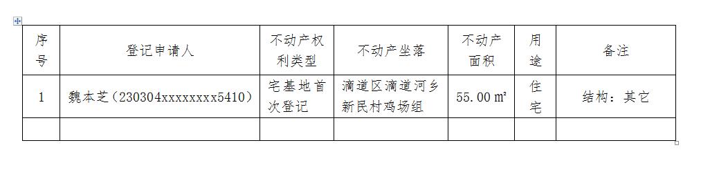 登记机构:鸡西市不动产登记中心滴道不动产登记办公室