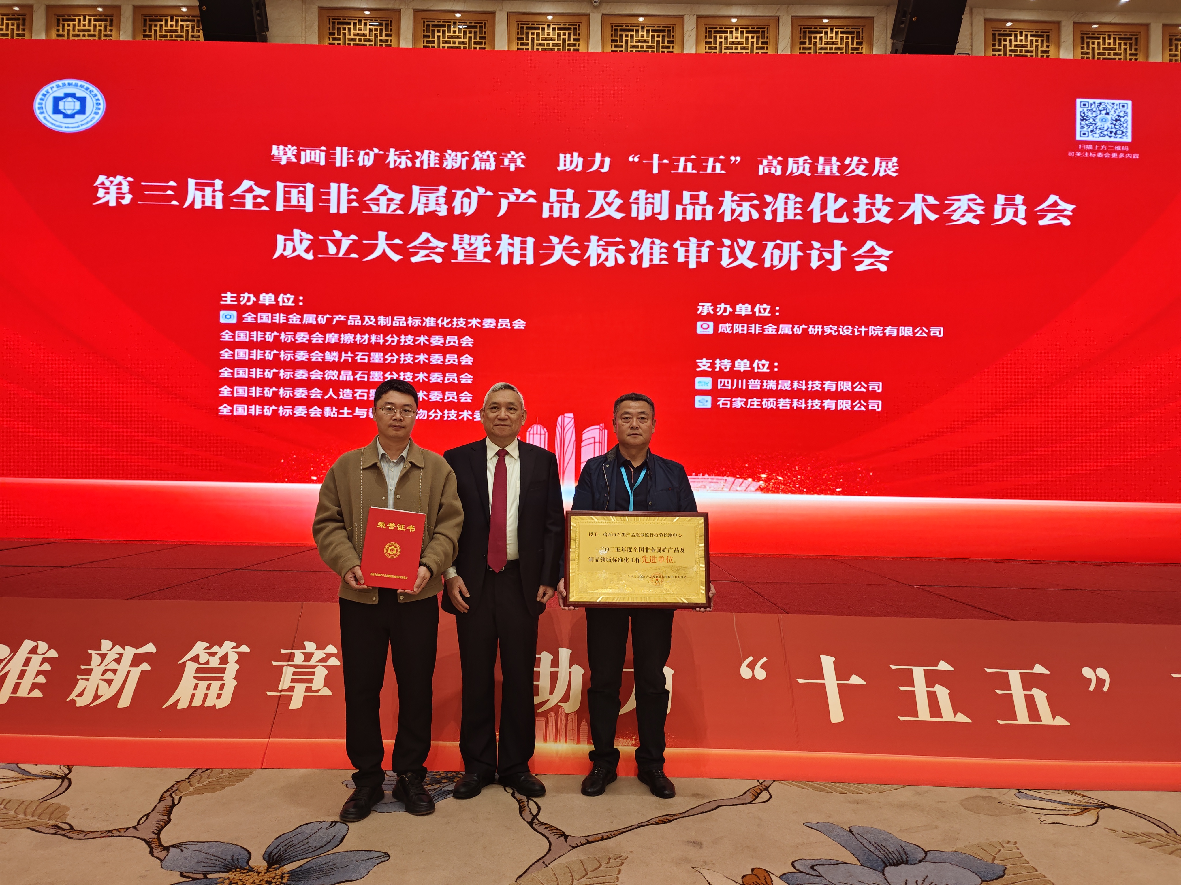 鸡西市石墨产品质量监督检验检测中心一直以来在石墨产业标准化工作中成果显著。经全国非金属矿产品及制品标准化技术委员会综合评议,鸡西市石墨产品质量监督检验检测中心荣获"2025年度全国非金属矿产及制品领域标准化工作先进单位"称号,成为本年度获此殊荣的标杆机构之一,为全国鳞片石墨生产企业的规范发展提供了有力支撑,彰显了其在行业内的权威地位。此次积极参与全国非金属矿产品及制品标准化技术委员会标准审议研讨会,是中心在标准化工作上的又一次重要行动。未来,鸡西市石墨产品质量监督检验检测中心将继续秉持专业、严谨、创新的态度,以标准化工作为抓手,持续提升自身技术水平和服务能力,为推动石墨产业高质量发展,打造“中国石墨之都”品牌,助力全国非金属矿产品及制品行业标准化建设贡献更多力量。