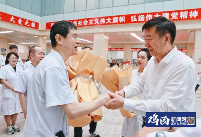 在鸡西市人民医院,孙成坤先后来到门诊大厅和综合内科,为普外一科主任魏立志、心内二科主任金光浩送上鲜花和祝福,并与大家合影留念。他强调,要加强学科建设,锚定群众健康新需求,以科研项目为驱动,精心打造高品质的特色学科、专业学科,全面提升医院的核心竞争力。要打造一流队伍,聚焦“引、育、留、用”关键环节,采取招才引智、名医带徒、组团帮扶等方式,引进培养更多优秀人才,组建优质医疗服务团队。要强化人文关怀,全面落实各项惠医举措,营造尊医重卫良好氛围,不断增强广大医务工作者的荣誉感和幸福感。