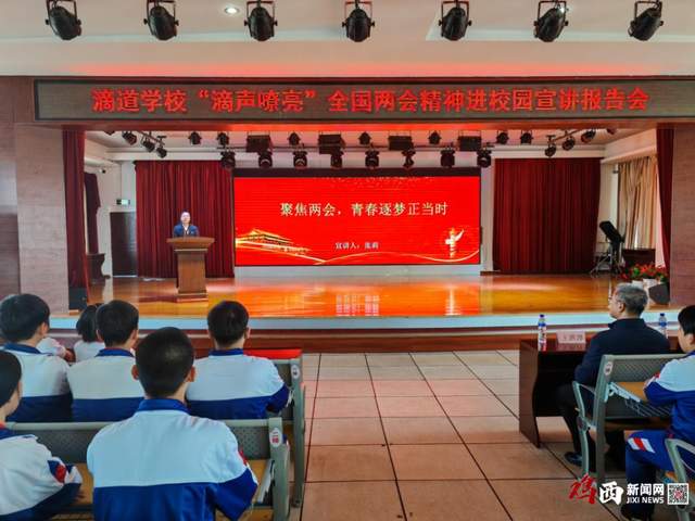 为使两会精神深入校园,激励师生在青春征程中与时代同频,为实现中华民族伟大复兴贡献力量,4月16日,滴道区滴道学校以“青春筑梦两会,携手共赴未来”为主题,举办了一场别开生面的“滴声嘹亮”——全国两会精神进校园宣讲报告会,吸引全校师生热情参与。