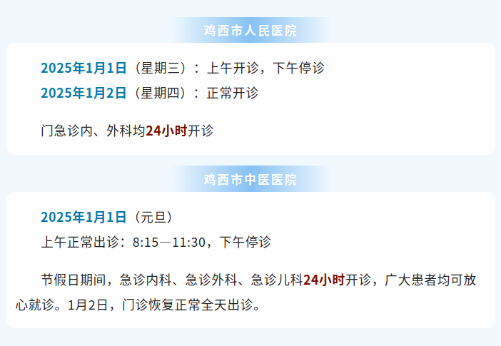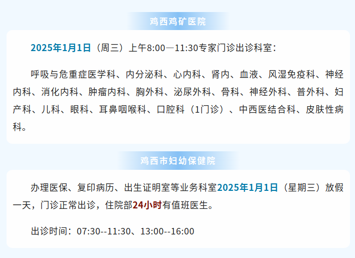 2025年元旦期间,鸡西这些医院门急诊安排→