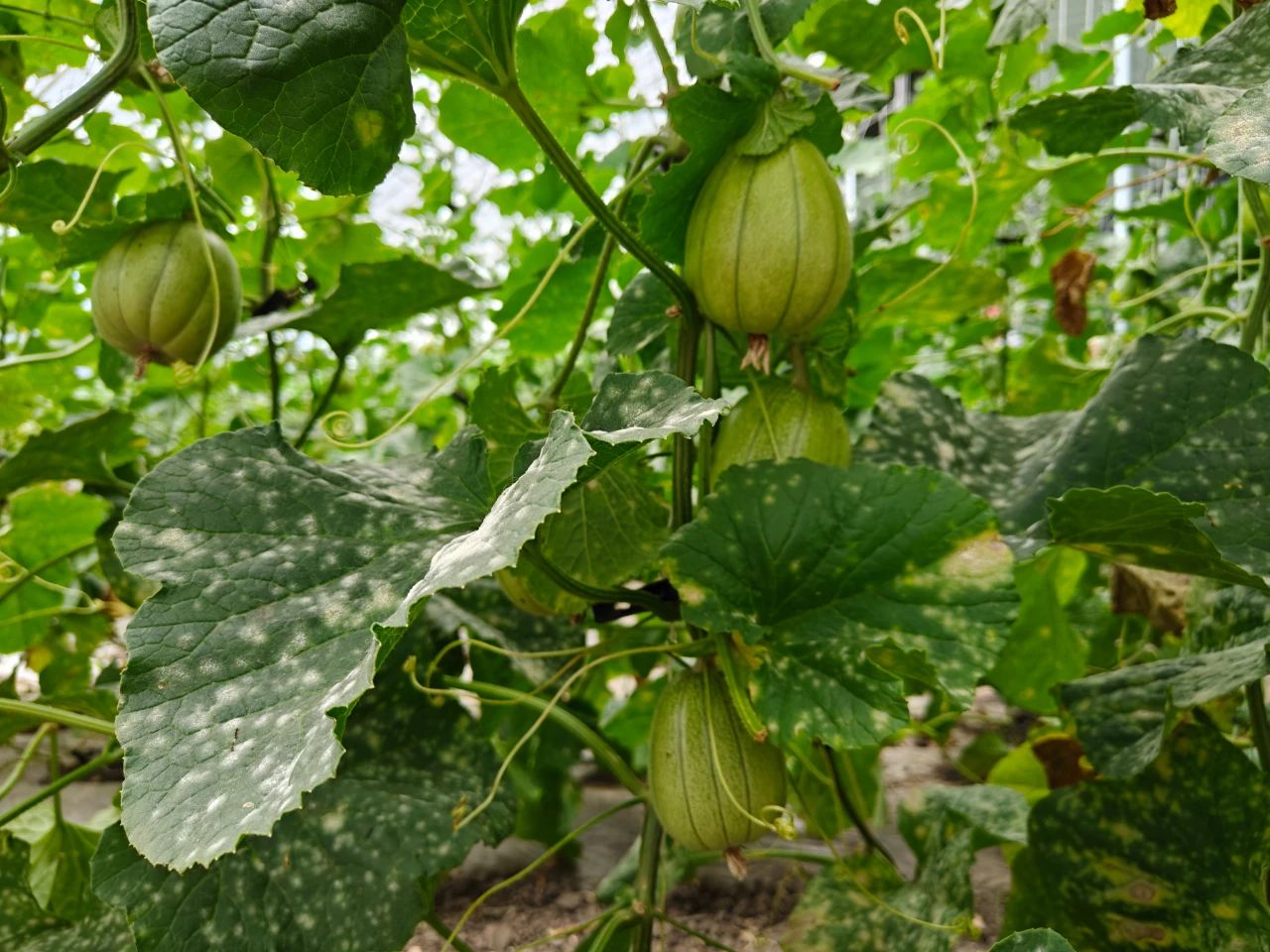 在人们的印象中,香瓜秧本应贴着地面生长,而在这里它们却像黄瓜一样爬上架。艾维农庄壹号院技术员丁小川告诉记者,这样种植香瓜,既节省空间,利于通风,又方便游人观赏、采摘。