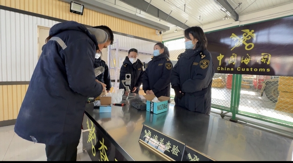 在黑龙江义立国际贸易有限公司厂区内,Ozon-Uni边境仓货物满满,毗邻的则是在政府支持下,企业配套建设的海关监管仓库。在义立海关监管中心,鸡冠区选派的6名跨境电商专属海关联络专员协助密山海关工作人员开展货物查验,扫描、核对、施封一气呵成。通过7×24小时预约通关服务,货物实现“即报、即检、即放”,比以前节省一半时间。