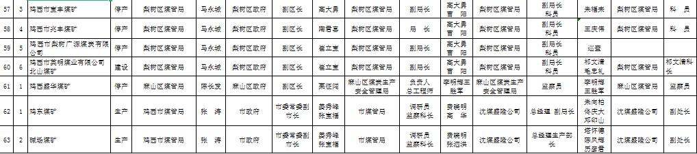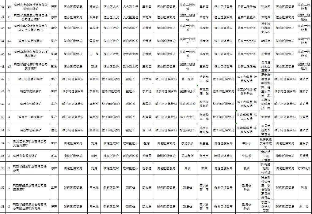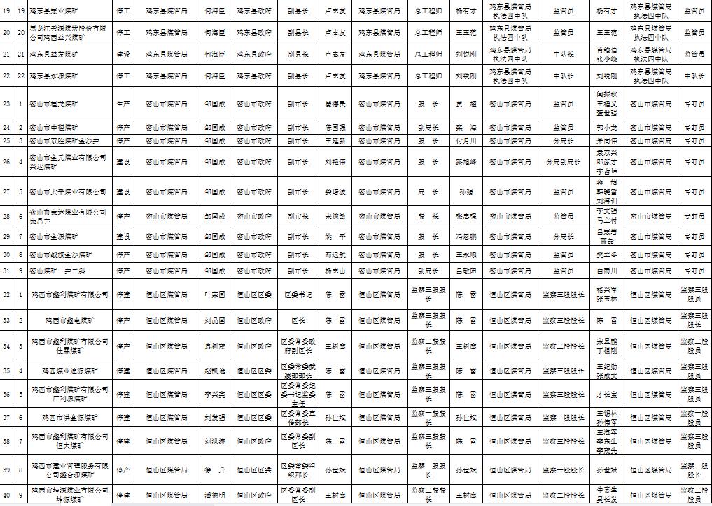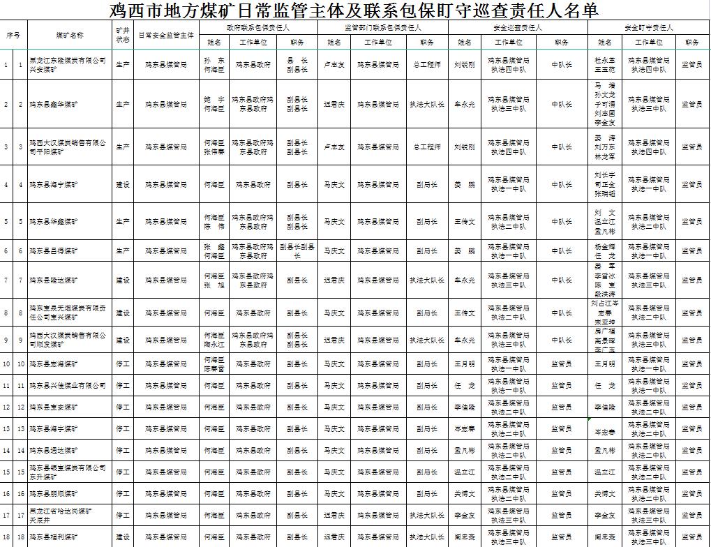 鸡西市地方煤矿日常监管主体及联系包保盯守巡查责任人名单
