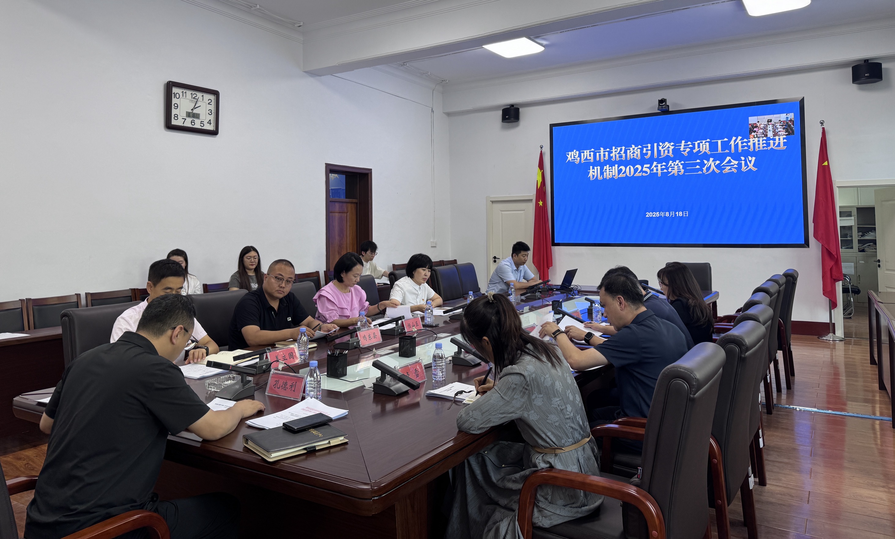 8月18日,市投促中心党组书记、主任孔德利主持召开鸡西市招商引资专项工作推进机制2025年第三次会议。会议深入传达黑龙江省招商引资领导小组推进产业项目调度会议精神,听取各县(市)区、市经开区招商引资工作完成情况汇报,安排部署下阶段工作任务。市投促中心领导班子、各县(市)区投促中心主任及主要负责同志,市经开区分管负责同志参加会议。