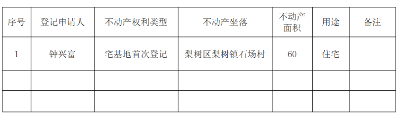经初步审定,我机构拟对下列不动产权利予以首次登记,根据《不动产登记暂行条例实施细则》第十七条的规定,现予公告。如有异议,请自本公告之日起十五个工作日内(2025年 12 月 31 日之前)将异议书面材料送达我机构。逾期无人提出异议或者异议不成立的,我机构将予以登记。