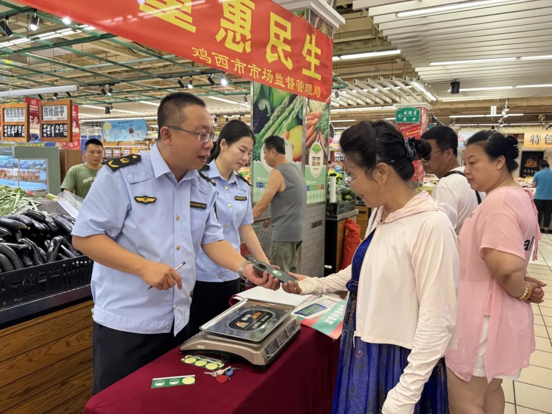 7月23日上午,熙熙攘攘的鸡西新玛特广益店商超卖场,一场别开生面的“计量惠民生”活动正在进行。鸡西市市场监督管理局联合鸡冠区市场监督管理局开展的“手机变砝码”行动,将日常随身携带的手机化作维权“公平秤”,用“小计量”撬动“大民生”,为百姓的“菜篮子”“米袋子”筑牢公平防线。