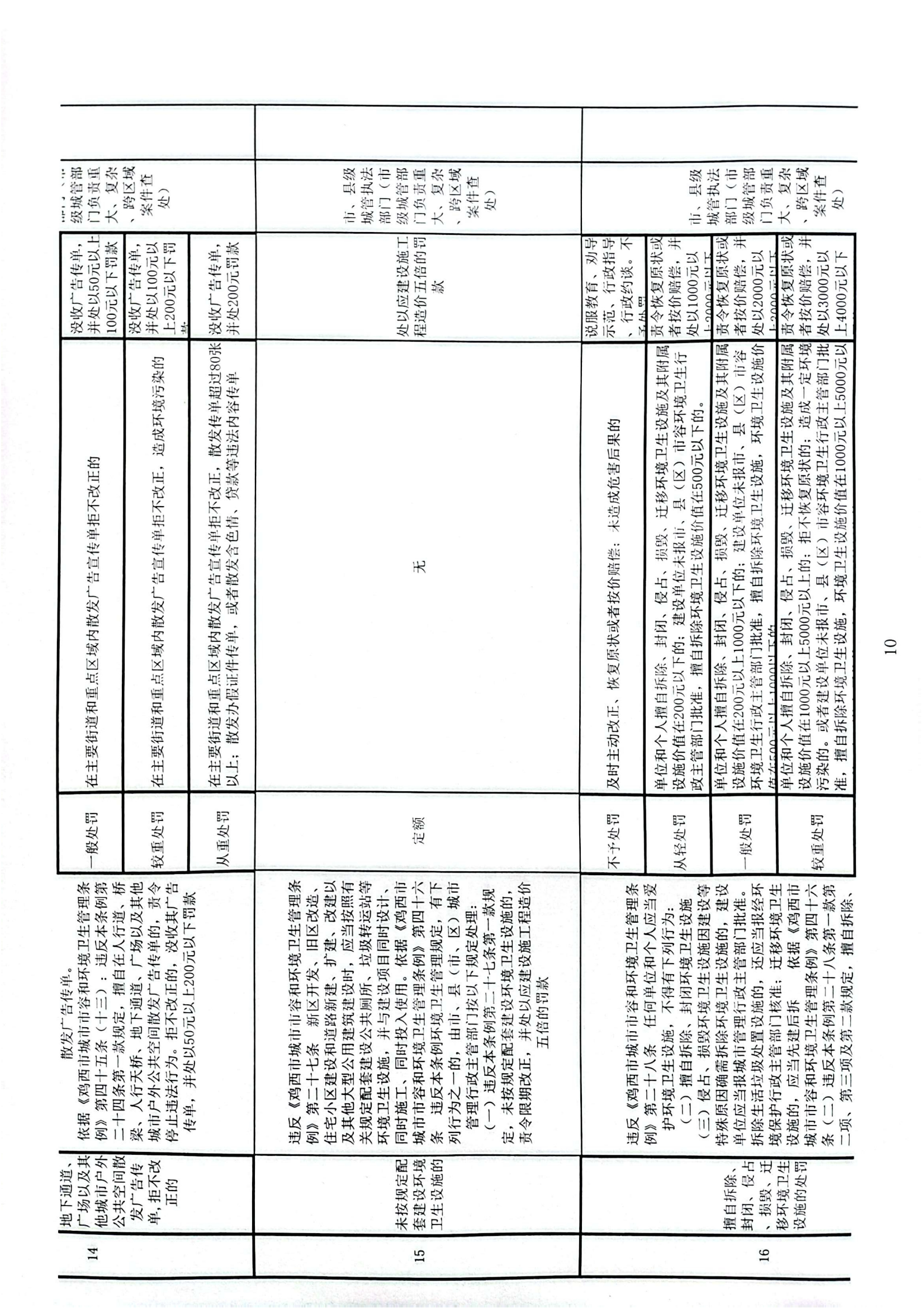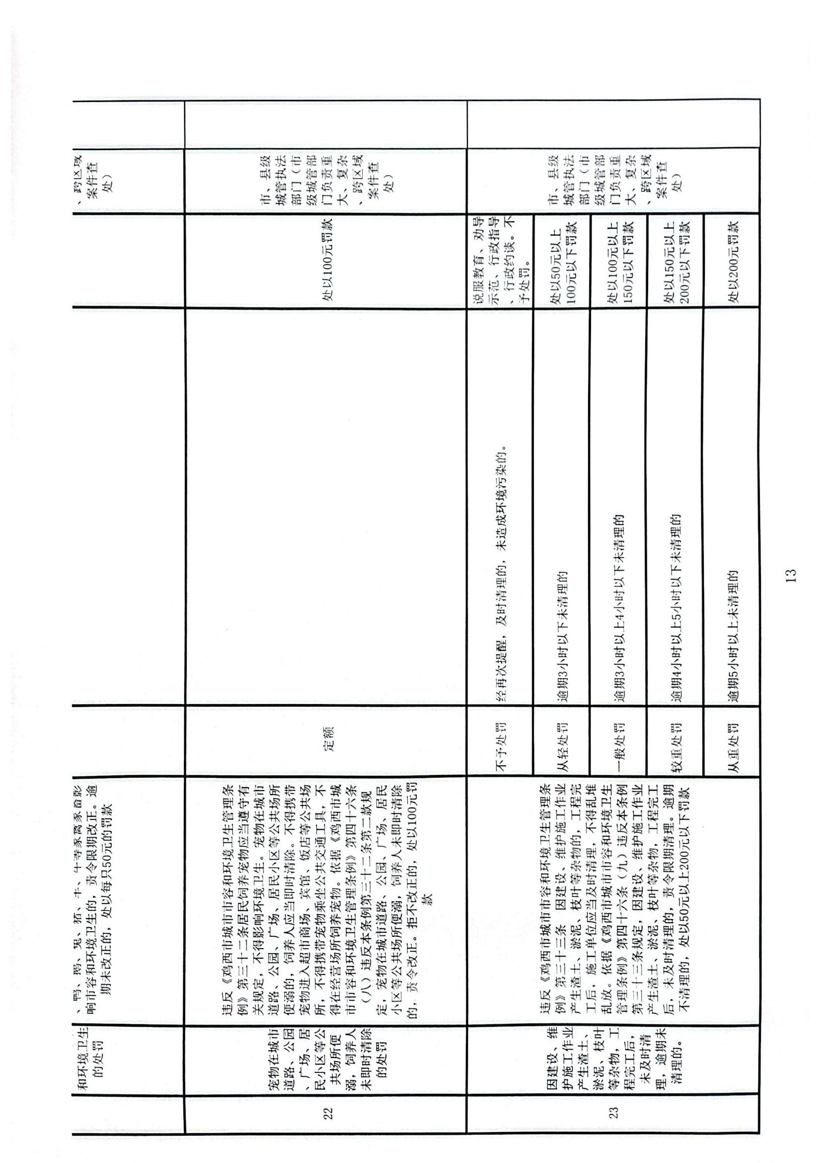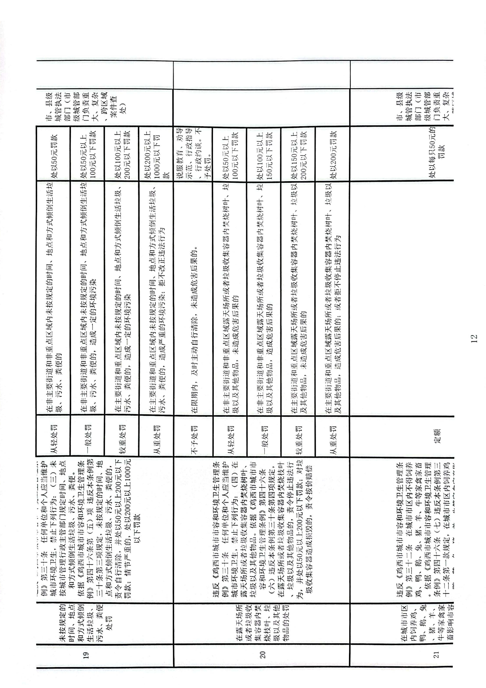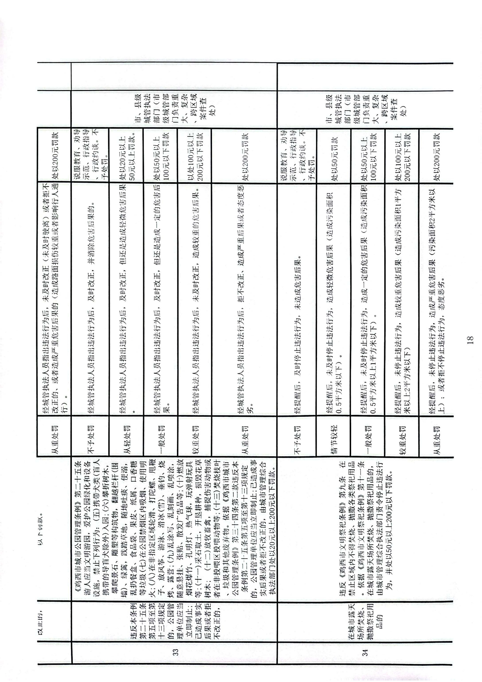 关于适用《鸡西城管系统涉及我市地方性法规行政处罚裁量基准表》的通知