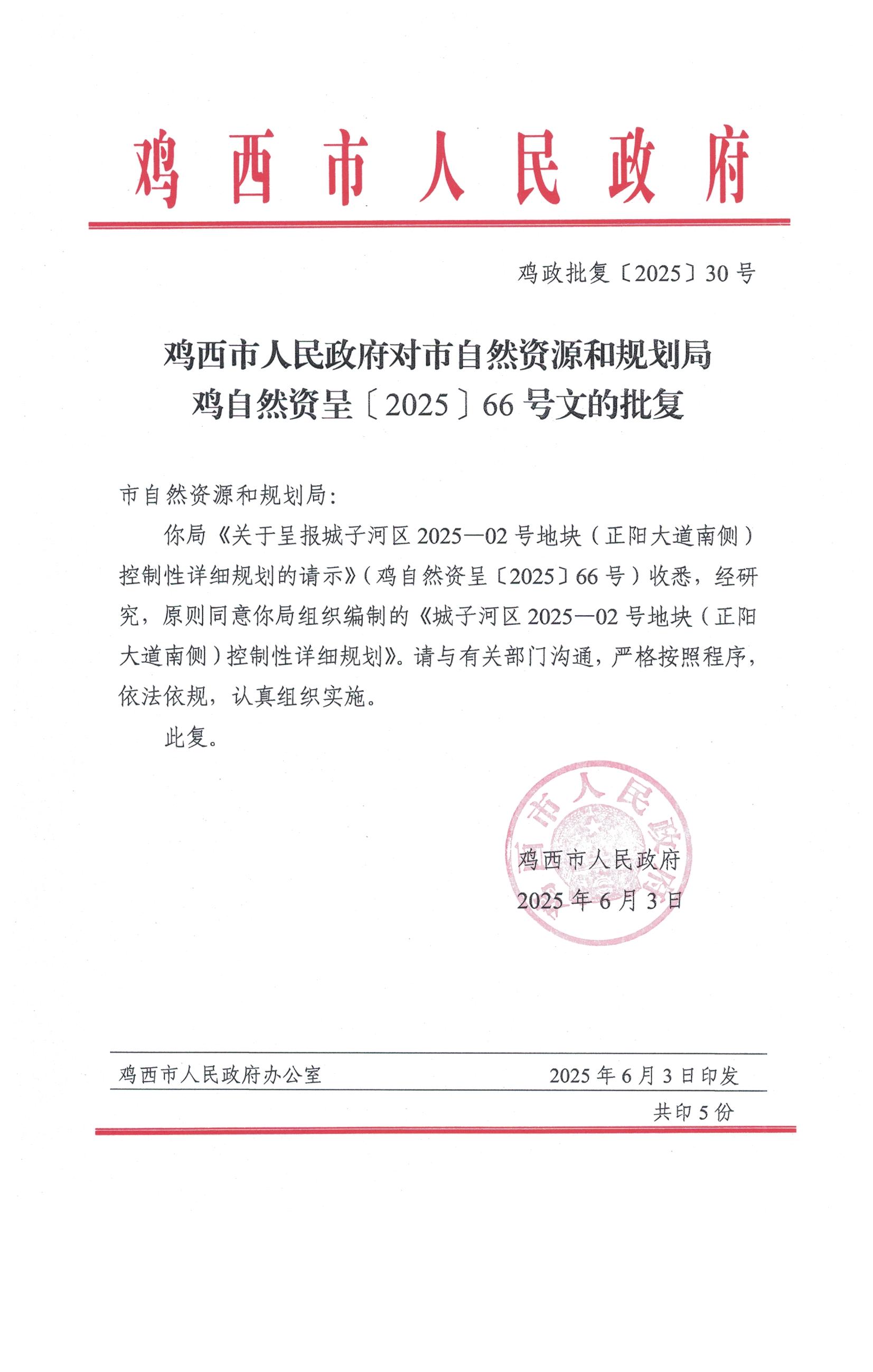 依据《中华人民共和国城乡规划法》第八条及住建部《关于城乡规划公开公示的规定》第九条、第十五条规定,现将鸡西市人民政府依法批准的《城子河区2025-02号地块(正阳大道南侧)控制性详细规划》进行批后公布,公布日期自本公告发布之日起三十日。