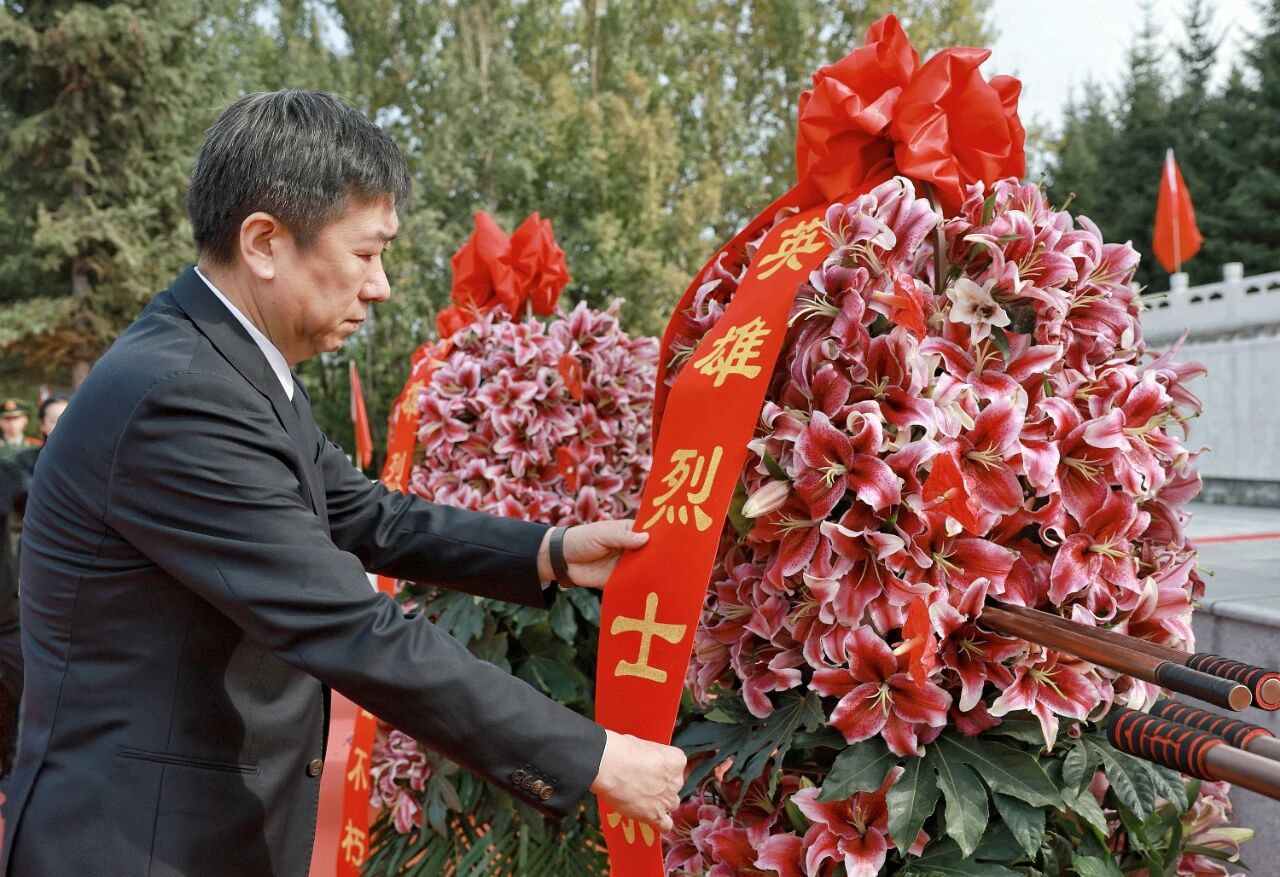 英魂长存,浩气长昭。市革命烈士陵园内气氛凝重而肃穆,现场干部群众整齐列队、肃穆伫立。9个大型花篮一字排开,红色缎带上“英雄烈士永垂不朽”的金色大字在阳光下闪耀着夺目的光芒,仿佛在向世人宣告着英雄的不朽功勋。