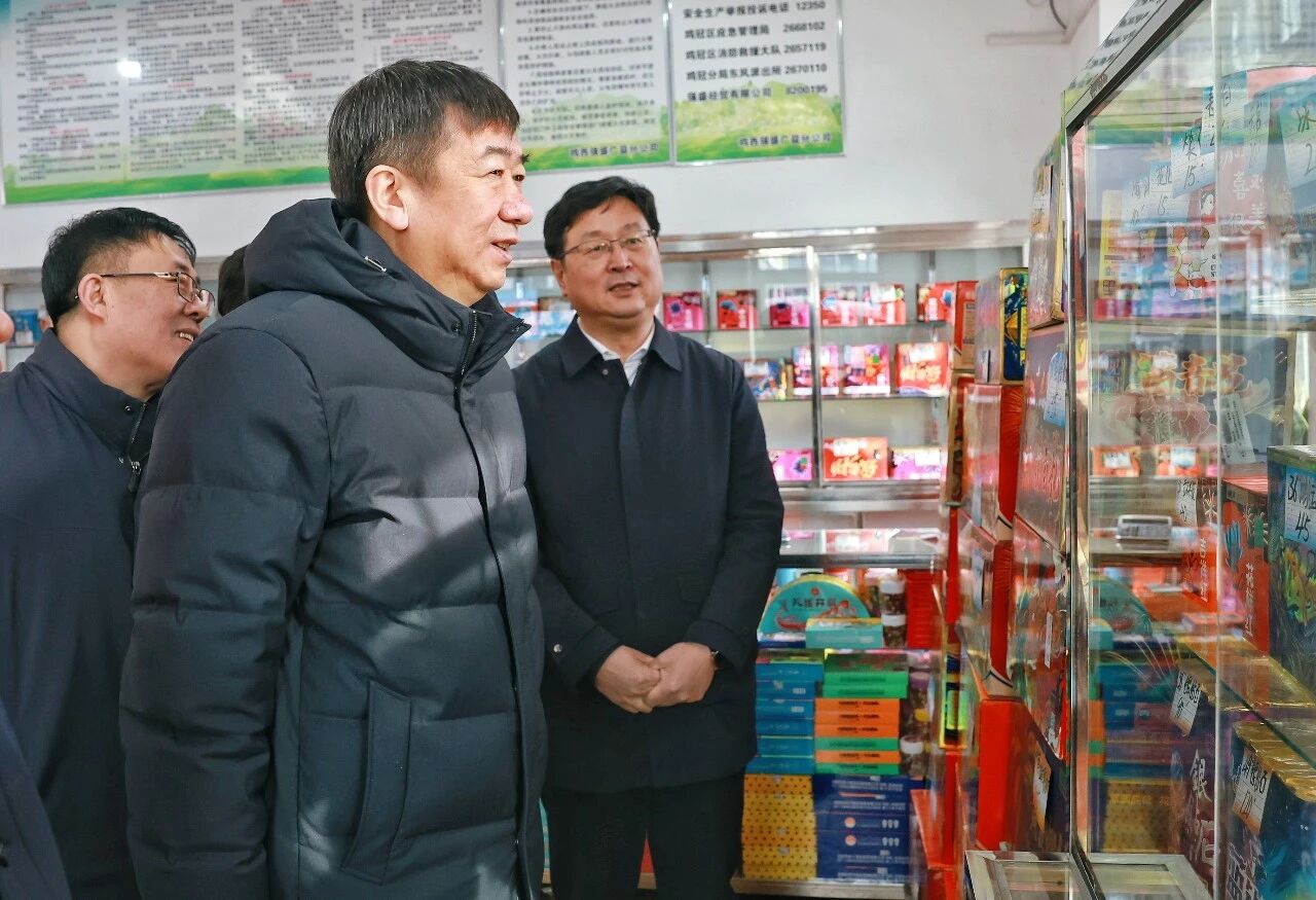 在鸡西市强盛经贸有限公司鸡冠广益分公司,孙成坤详细了解烟花爆竹经营、仓储和运输管理等情况。他强调,要加大安全防范力度,强化烟花爆竹经营、运输、寄递、燃放等全链条安全监管,深化“打非”专项行动,狠抓超标违禁产品排查整治,严肃查处各类违法违规行为。要完善安全管理措施,认真遵守烟花爆竹流向登记管理制度和安全操作规程,加强安全宣传和舆论引导,营造安全稳定社会环境。要拧紧安全责任链条,严格落实“党政同责、一岗双责”和“三管三必须”要求,压实企业主体责任,执行好领导在岗带班和24小时值班制度,确保遇有突发情况快速响应处置。