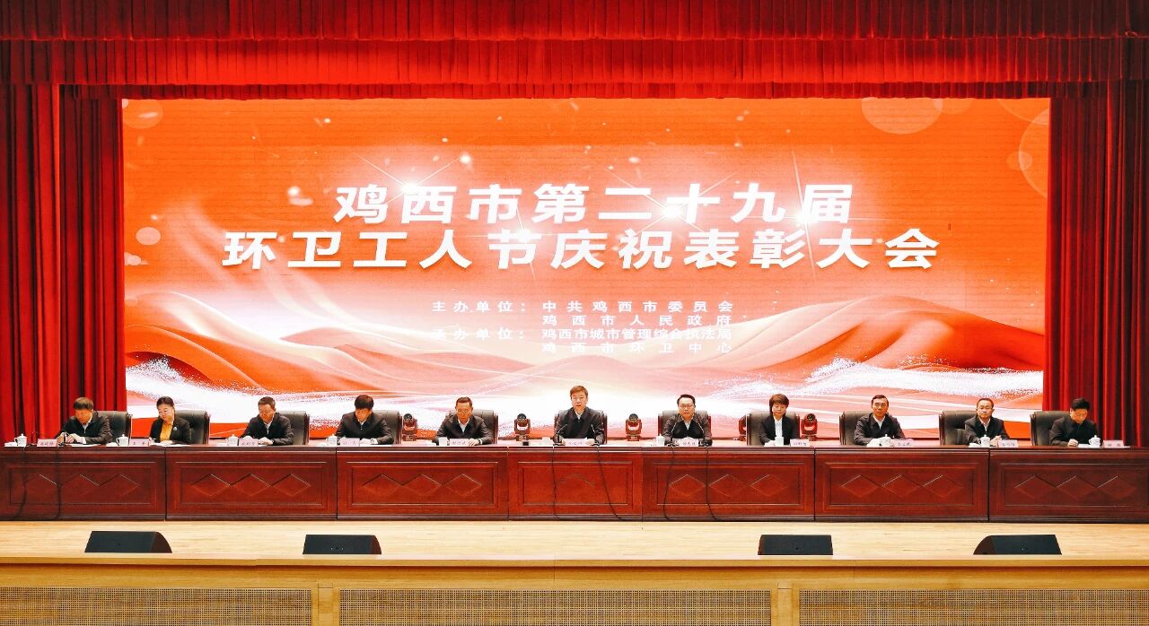 鸡西市第二十九届环卫工人节庆祝表彰大会隆重举行 孙成坤讲话 谢志强主持 张行斌郑野岩等出席