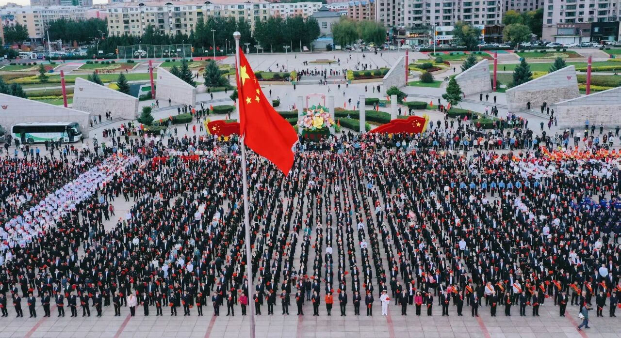 为庆祝中华人民共和国成立76周年,抒发和讴歌爱党爱国爱家乡的真挚情感,充分展示鸡西人民在奋进新征程上勇毅前行、建功新时代中生动实践和信心决心,激发市民的爱国热情,增强民族自豪感和凝聚力。10月1日上午,以“山河同庆· 盛世长歌”为主题的爱国主义教育升旗仪式在我市文化广场隆重举行。
