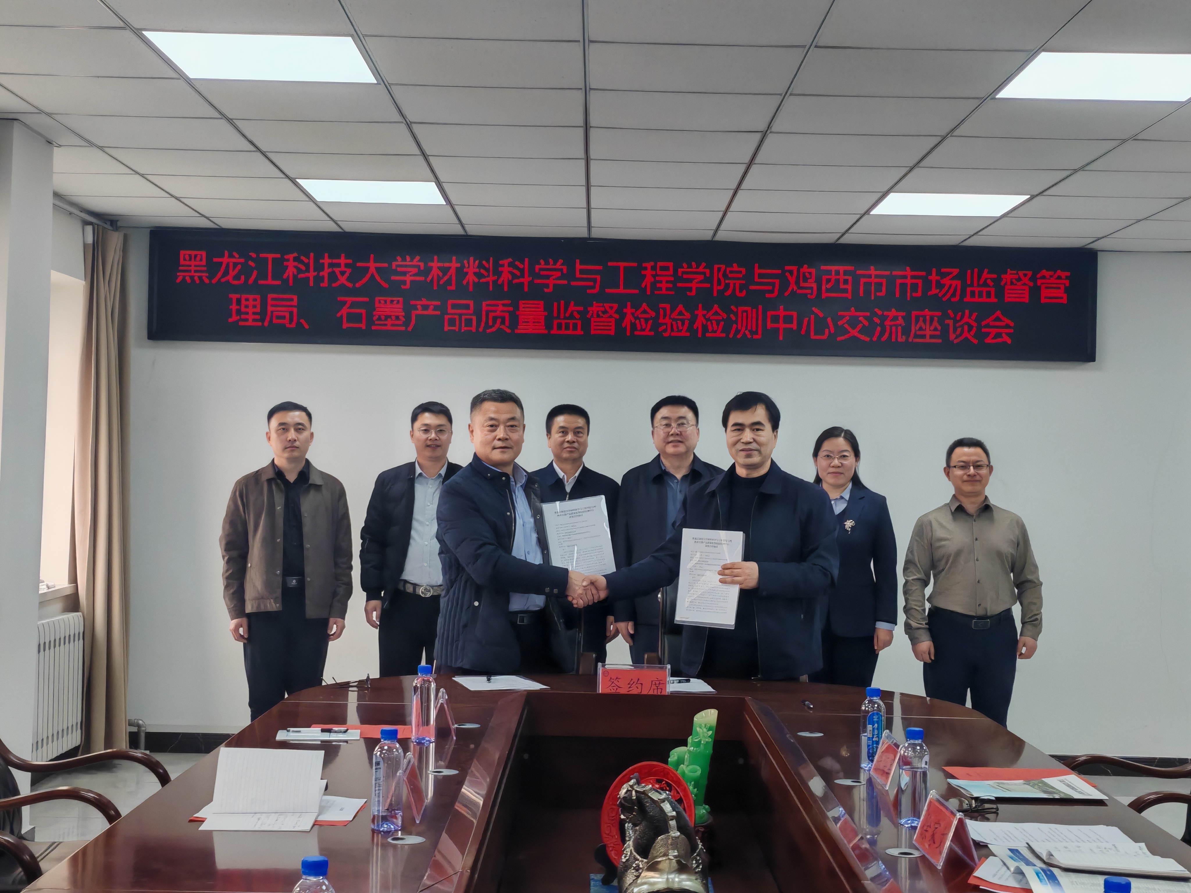 为进一步推动产教融合、助力石墨产业高质量发展,3月24日,鸡西市石墨产品质量监督检验检测中心(以下简称“石墨中心”)一行3人,在鸡西市市场监督管理局主管领导陪同下,赴黑龙江科技大学材料科学与工程学院(以下简称“材料学院”)开展专题交流洽谈,并正式签署合作协议。此举标志着双方在石墨领域的专项合作进入实质性推进阶段。