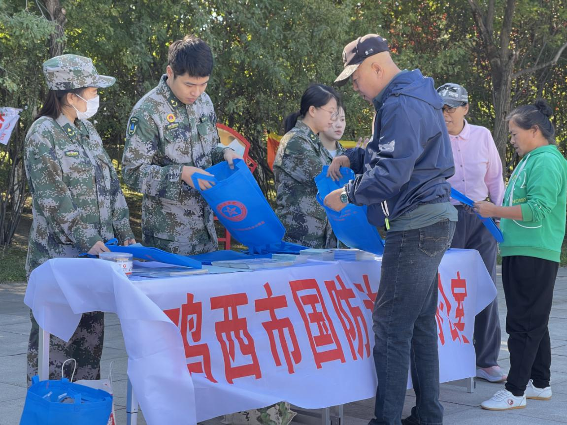 活动中,市国动办在市政府、万达广场前、鸡西市人防主题园设立3个宣传站,黑龙江龙煤鸡西矿业有限责任公司、中国铁路哈尔滨局集团有限公司鸡西工务段及各县(市)区国动办同步设立宣传站点,实现市、县、企业宣传网络全覆盖。各宣传站通过设置国防知识展台、摆放宣传展板、悬挂主题横幅等形式,直观展示“9·18”事变历史脉络、反法西斯战争重要历程及国动人防知识;现场工作人员统一着装,现场发放国防法、人防避险技能等各类宣传资料3000余册,耐心解答市民关于国防动员、自救互救的疑问,细致讲解预防避险、逃生防护等实用技能,让国防知识真正走进群众生活。