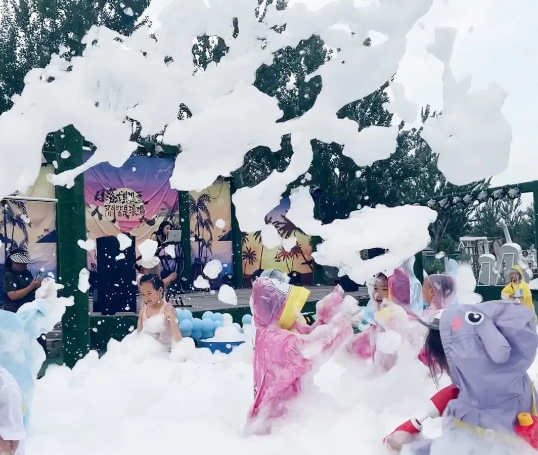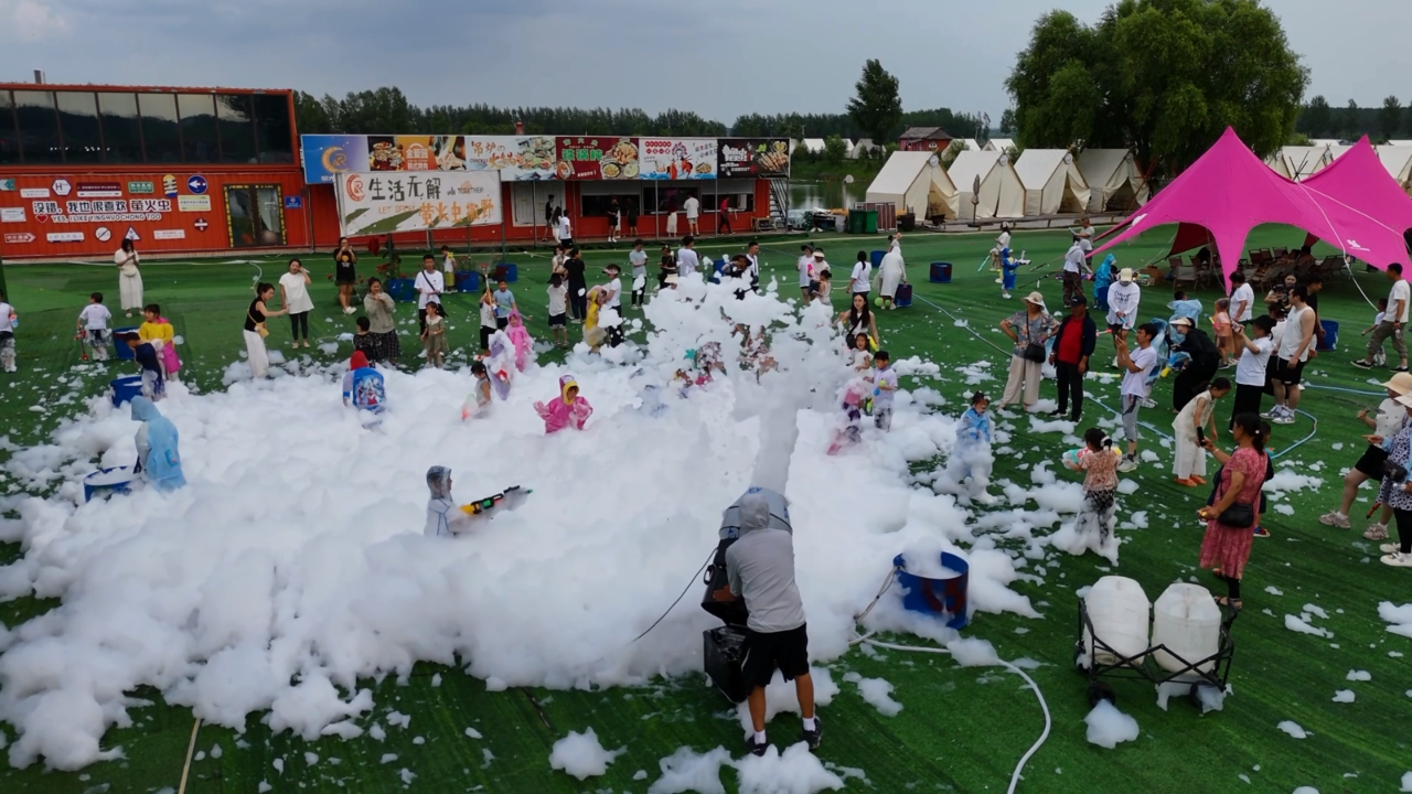 在虎林市伟光乡萤火虫星空露营基地,来自各地的游客围坐在一起倚靠帐篷欣赏夜景、在烟火香气中畅谈,感受夏日清凉、享受静谧休闲时光。在“泡沫之夏”主题活动区,洁白的泡沫像雪花般从机器中喷涌而出,瞬间铺满整片草坪,家长和孩子兴奋地在草坪上追逐嬉戏,沉浸式享受夏日清凉狂欢的乐趣。视觉、听觉与味觉的多元体验,让前来打卡、感受东北风光与民俗文化的江西游客邱武杰倍感轻松和愉悦。江西游客邱武杰说,也是应朋友邀请,来虎林避暑的,真的感觉挺惊喜的,听着音乐,看着篝火,真的感觉氛围感拉满了,有点像宫崎骏的夏天似的,真的感觉有点不想回家了。山东游客王紫玉说,来这里玩给她最大的感受,就是这里的气温非常的凉爽,东北人非常的热情好客。她跟朋友一起在这玩,特别的开心。