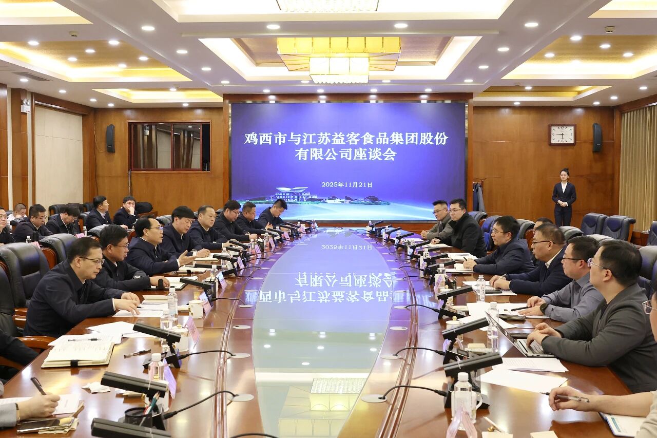 近日,鸡西市与江苏益客食品集团股份有限公司座谈会在市专家中心举行。