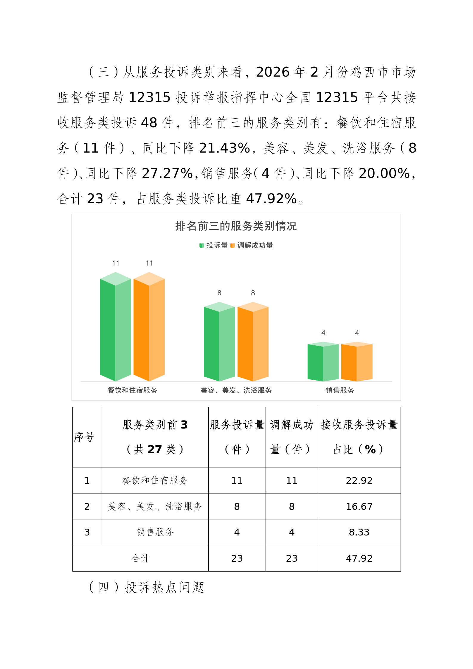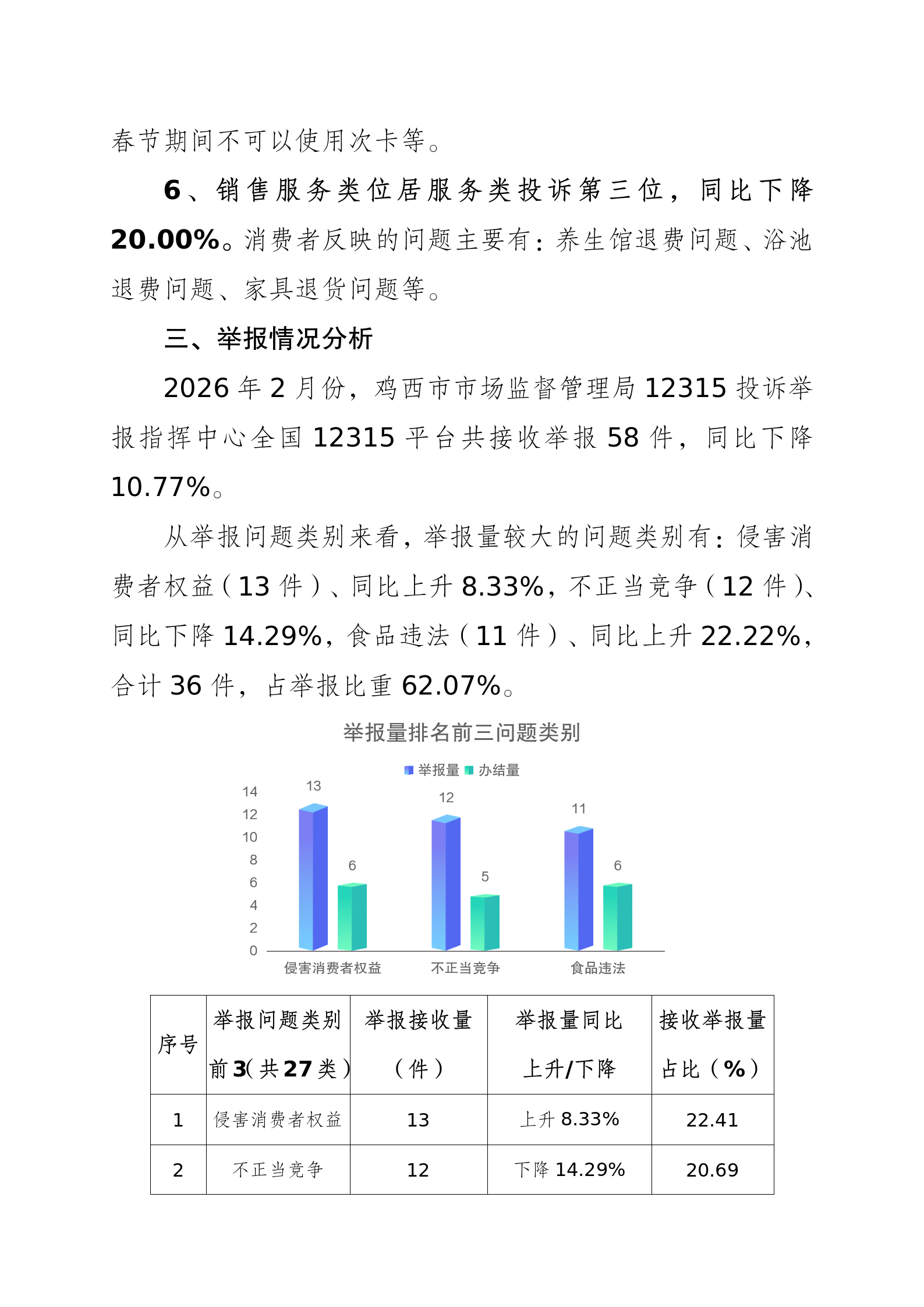 鸡西市市场监督管理局2026年2月份12315消费者投诉举报咨询数据分析报告