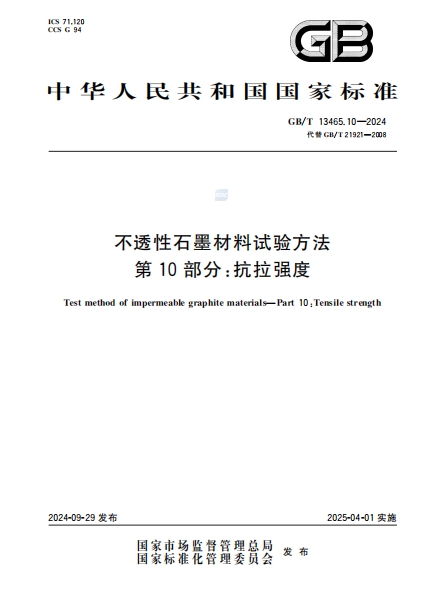GB/T 13465.10-2024不透性石墨材料试验方法 第十部分:抗拉强度
