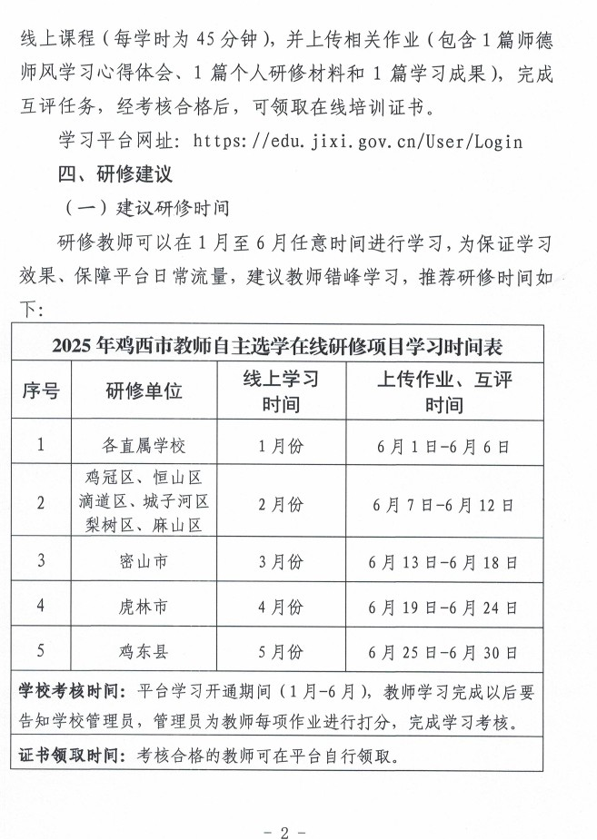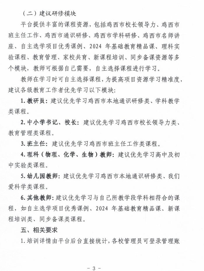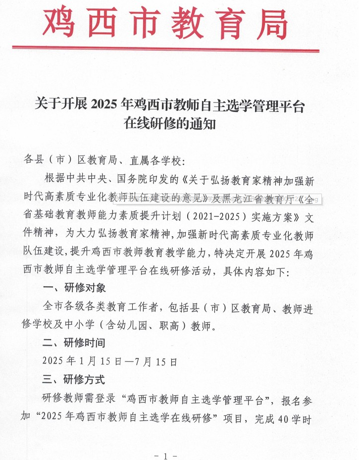 关于开展2025年鸡西市教师自主选学管理平台在线研修的通知